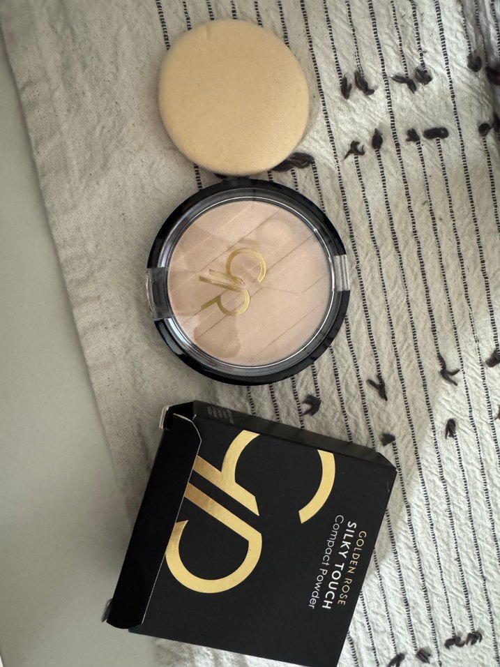 Golden Rose markalı açıktonlarda kompakt pudra, yuvarlak aplikatör sünger ve siyah ambalaj ile birlikte.Bana hediye geldiği için rengi uymuyor, sıfr üründür. Süngeri dahi tertemizdir, kutusunda yollanacaktır. Alana şans getirsin♥️