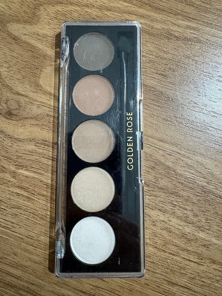 Golden Rose göz farı paleti, bej tonlarında beş açık renkten oluşur ve fırça içerir. Hafif makyaj için uygundur.