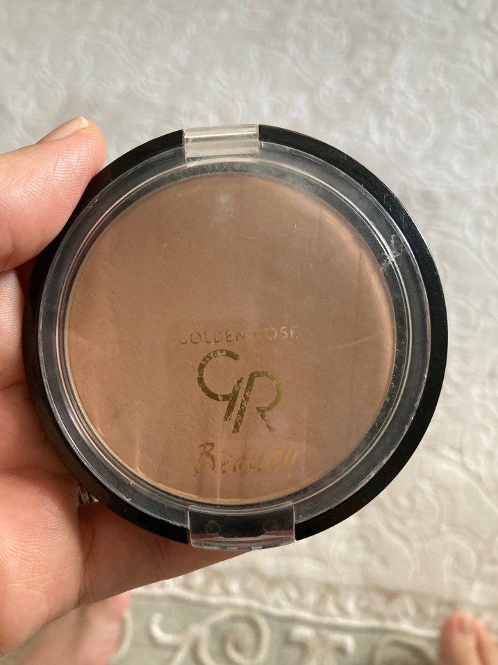 Bej parlak pudra, kapağında 'Golden Rose' markası görülür. Cilde pürüzsüz bir görünüm verir. ✨