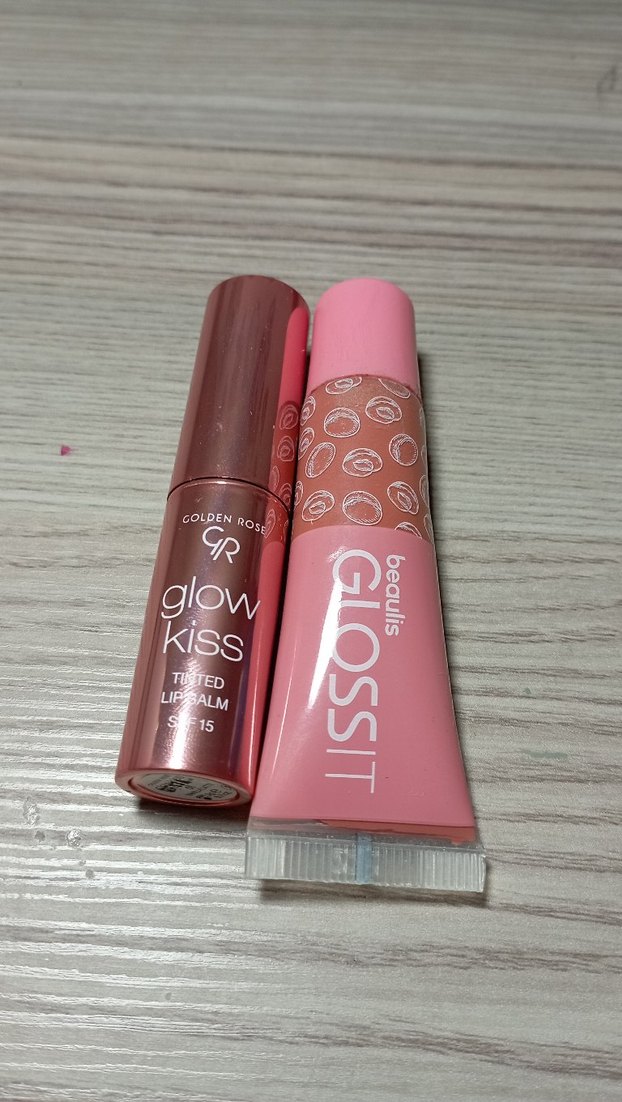 Elimde gördüğünüz rujlardan alttaki Golden Rose markasına, üstteki ise Beaulis Gloss İt markasına aittir. Golden Rose açık kahve rengine sahiptir sürümü çok kolay kremsi yapıdadır. Gloss İt ise şeftali renginde glosstur. İkisini kombinleyince güzel bir görüntü oluyor. İkisi de çok az kullanıldı, sadece birini almak isterseniz ayrı ilan açarım fiyatı düşürüp.