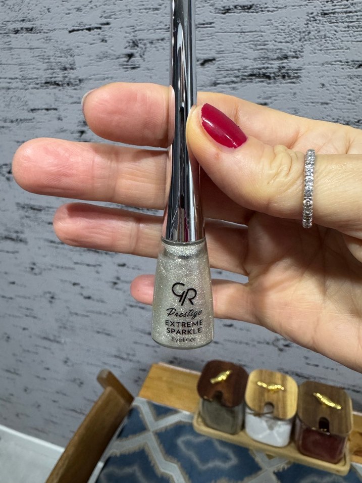 Golden Rose Extreme Sparkle serisi, uzun gümüş kapaklı, parlak gri tonlarında bir eyeliner, Golden Rose Extreme Sparkle Eyeliner 101 Gözlerinizin inanılmaz çekici, parlak ve yıldızlar kadar pırıltılı olmasını sağlar Gece ve gündüz için vazgeçilmez bir üründür! Fotoğraflarda göründüğü gibi hiç kullanılmadı, bir kere denendi. Işıltılı gece makyajınızda Göz pınarına sürebilirsiniz. Şu an hiç bir yerde gümüş rengi yok.
