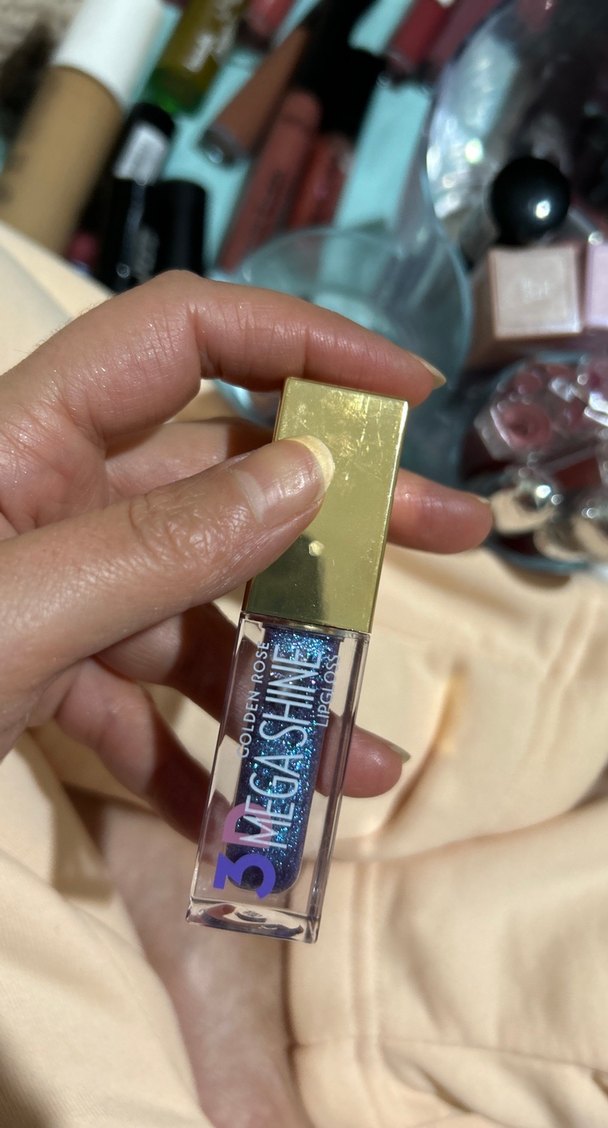 Parlak mavi renkte, ışıltılı bitişli ruj. Altın kapaklı şık tüpte, canlı renk ve parlaklık sağlar. Bir kaz kullandım