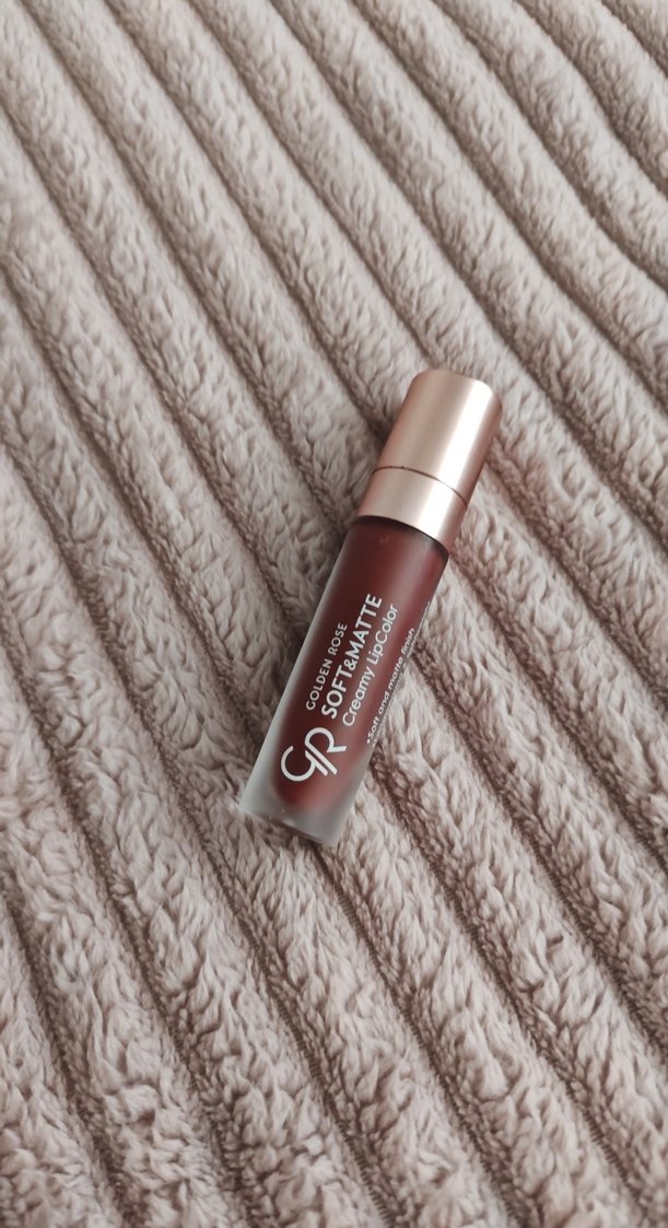Golden Rose Soft Matte kremli likit ruj, parlak kahverengi tonuyla pürüzsüz, mat bir görünüm sunar.