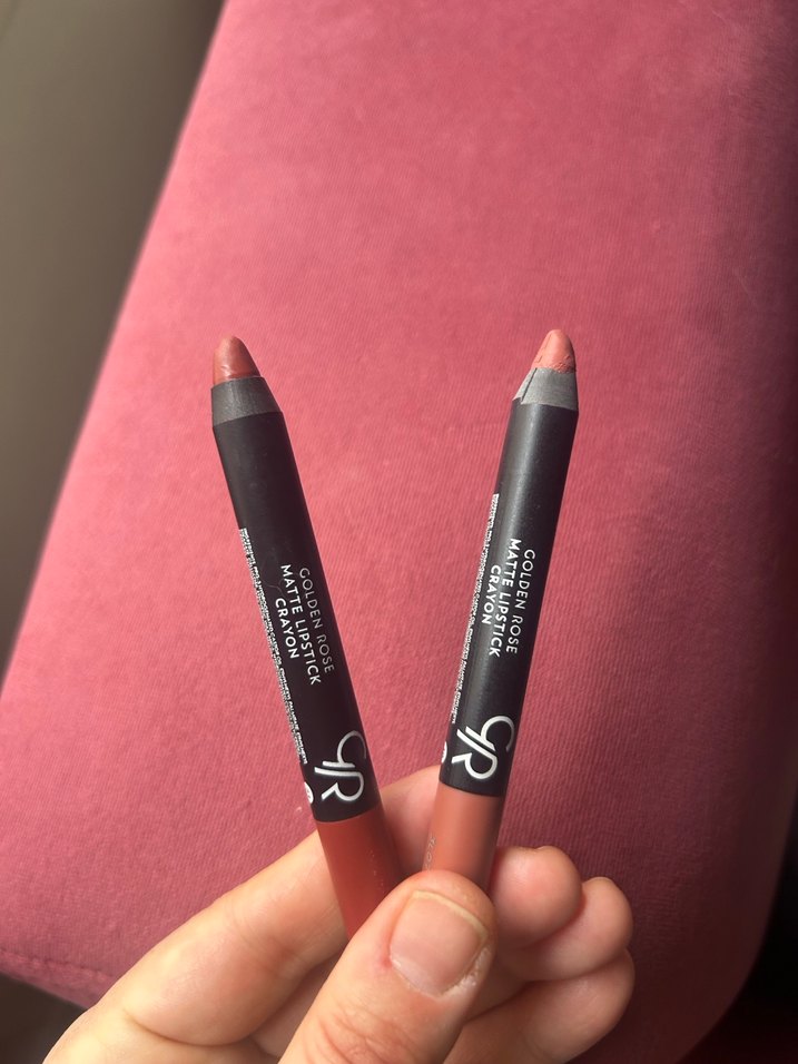Golden Rose Matte Lipstick Crayon kalem rujlardan oluşan ikili settir.✨Numaralar: 18 ve 21✨Mat bitişli ve kalıcı yapıya sahiptir.✨Satıştan elde edilen gelir sokak hayvanlarına mama olacaktır ✨#goldenrose #kalemruj #matruj #crayonruj #ruj #makyaj #kozmetik #ikiliruj #mama #sokakhayvanları #dolap