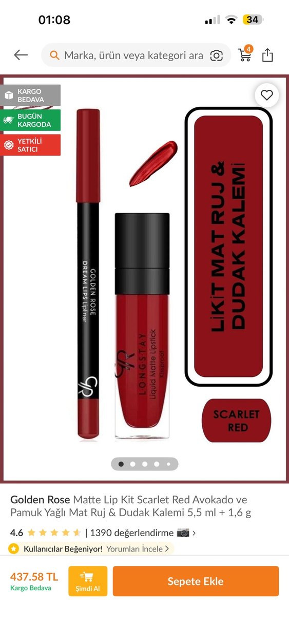 Golden Rose Mat Likit Ruj & Dudak Kalemi Scarlet Red