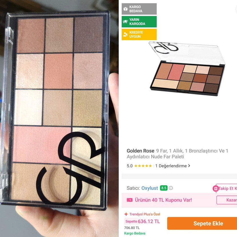 Golden Rose Nude Far Paleti, 9 açık tonlu renk, 1 aydınlatıcı ve 1 bronz renk içerir, doğal makyaj için uygundur. allık denendi o kadar