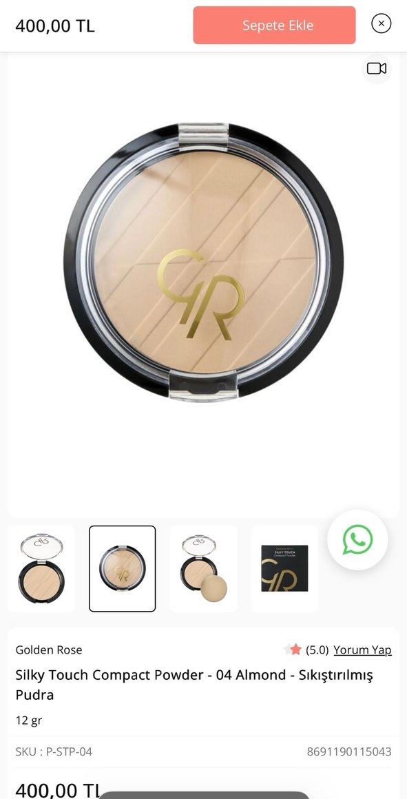 Rengi uymadığı için satıyorum çok az kullanıldı.Golden Rose Silky Touch kompakt pudra 04 , sıkıştırılmış dokusuyla doğal kapatıcılık sağlar. ✨