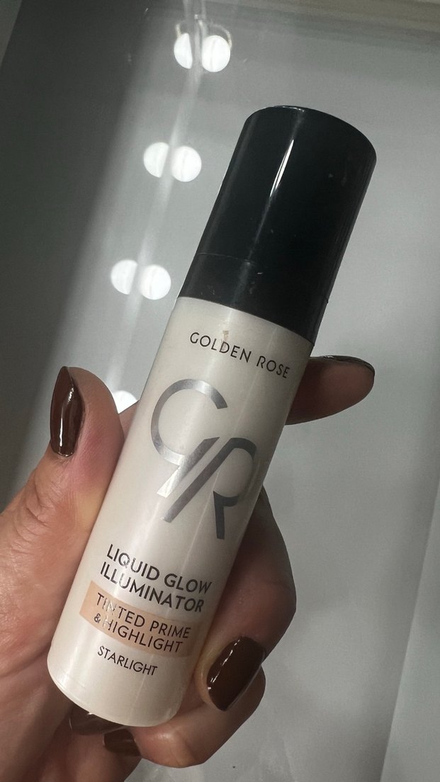 Golden Rose Liquid Glow Illuminator Starlight, açık bej tonunda, hem baz hem de aydınlatıcı olarak cilde parlaklık katan sıvı formda bir üründür. Ürünü denemek için bir kez kullandım ✨