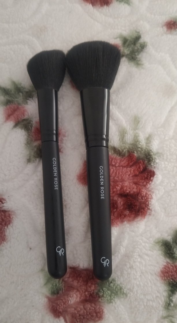 Golden Rose markalı, yumuşak kıllara sahip iki siyah makyaj fırçası seti, pürüzsüz uygulama sağlar. ️