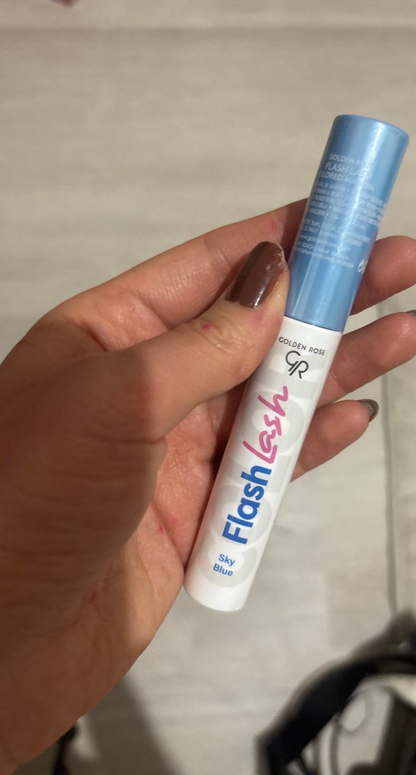 Golden Rose Flash Lash maskara, pastel gökyüzü mavisi rengiyle kirpikleri yumuşak ve canlı bir mavi tonla belirginleştirir.