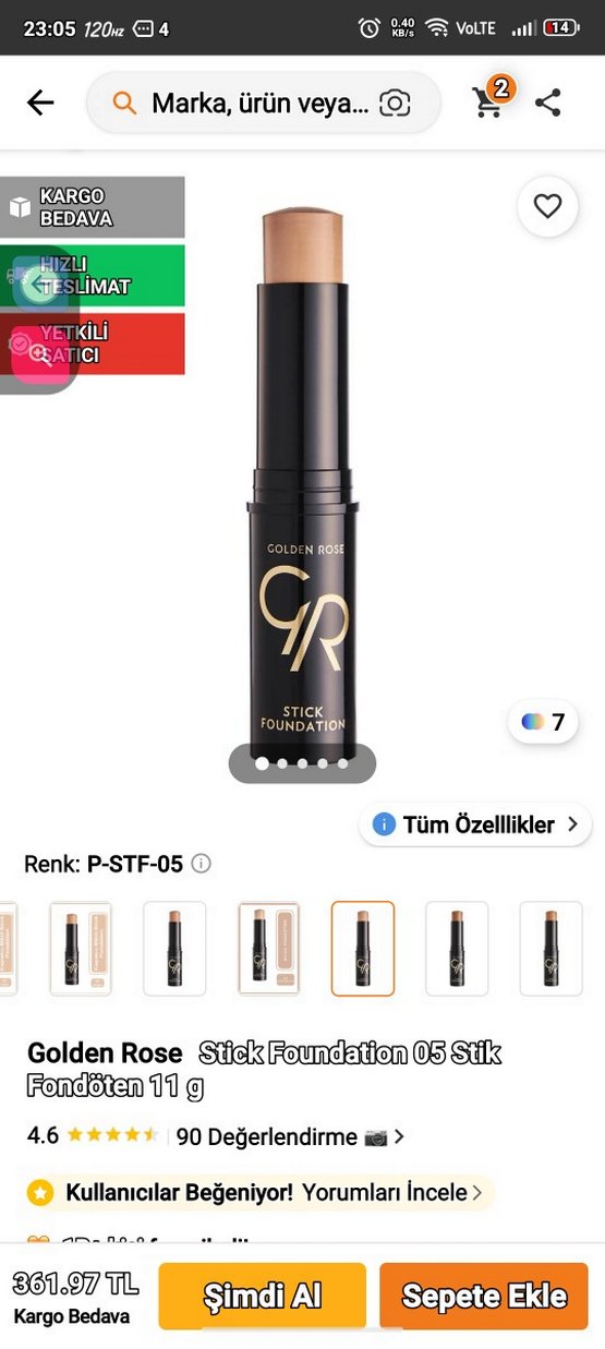 Golden Rose Stick Foundation 05 numara bej tonu, parlak bitişli ve pratik stick formda 11 g ağırlığında.yarisina kadar doludur