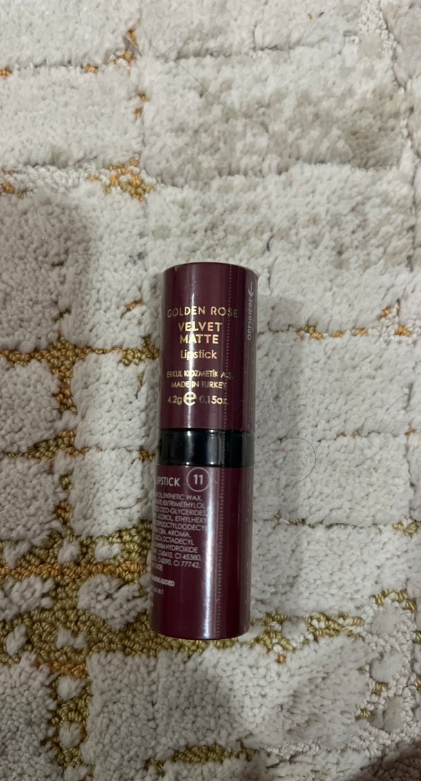 Golden Rose Velvet Matte ruj, koyu bordo renkte, zengin mat bitiş ve pürüzsüz sürüm sunar.