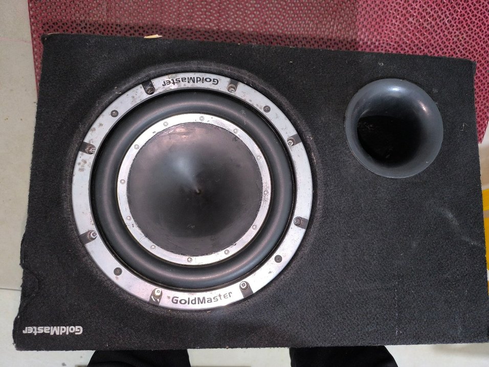 GoldMaster müzik sistemi, siyah ve gri renkte, güçlü hoparlör ve bas portu ile ses kalitesini artırır.