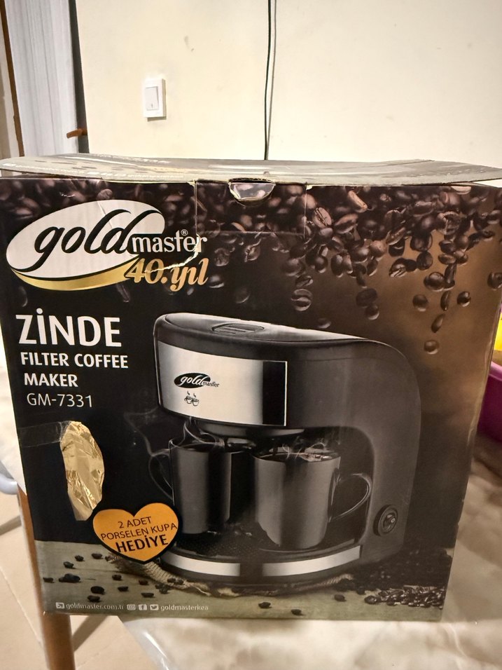 Goldmaster Zinde filtre kahve makinesi GM-7331 koyu altın renkte olup, 2 porselen fincan hediyelidir. Pratik kahve demleme sağlar. ☕ Çalışıyor hiç kullanılmadı kullanmadığım için satıyorum