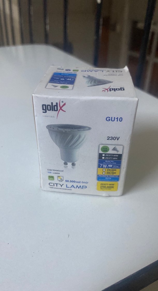 Goldx GU10 City Lamp ampul, 230V ve 7W gücünde. 2700-3000K renk sıcaklığı ve 50.000 saat ömrü sunar. Farklı aydınlatma ihtiyaçları için uygundur.