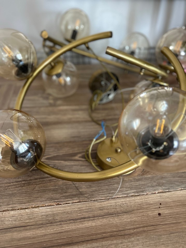 5li gold avize az kullanıldı ampuller fiyata dahildir yer Adana Altın renkli çerçeveye sahip, çoklu şeffaf cam ampullerle modern ve şık bir avizedir.