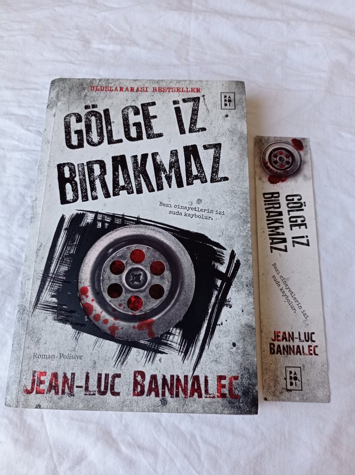 Jean-Luc Bannalec'in "Gölge İz Bırakmaz" adlı polisiye romanı, kapakta kan lekeli bir düğme görseliyle dikkat çekiyor.