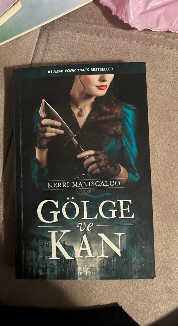 Kerri Maniscalco'nun "Gölge ve Kan" adlı romanı, bıçak tutan bir kadının olduğu karanlık ve gizemli bir kapağa sahip. #1 New York Times bestseller.
