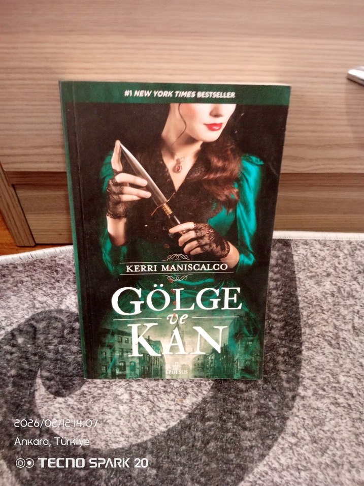 Kerri Maniscalco'nun Gölge ve Kan adlı romanı, bıçak tutan bir kadını gösteren gizemli ve karanlık bir kapağa sahip.