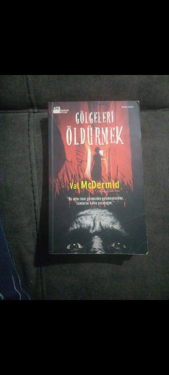 Val McDermid'in Gölgeleri Öldürmek adlı romanı, gerilim dolu anlatımı ve karanlık temalarıyla dikkat çekiyor. Kapakta gölgeli bir figür ve yoğun bakışlar yer alıyor.