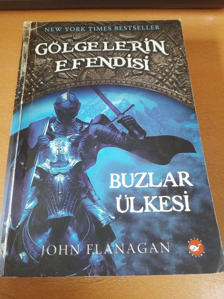 John Flanagan'ın 'Gölgelerin Efendisi' serisinden New York Times bestseller romanı 'Buzlar Ülkesi', zırhlı bir şövalye kapak görseliyle.