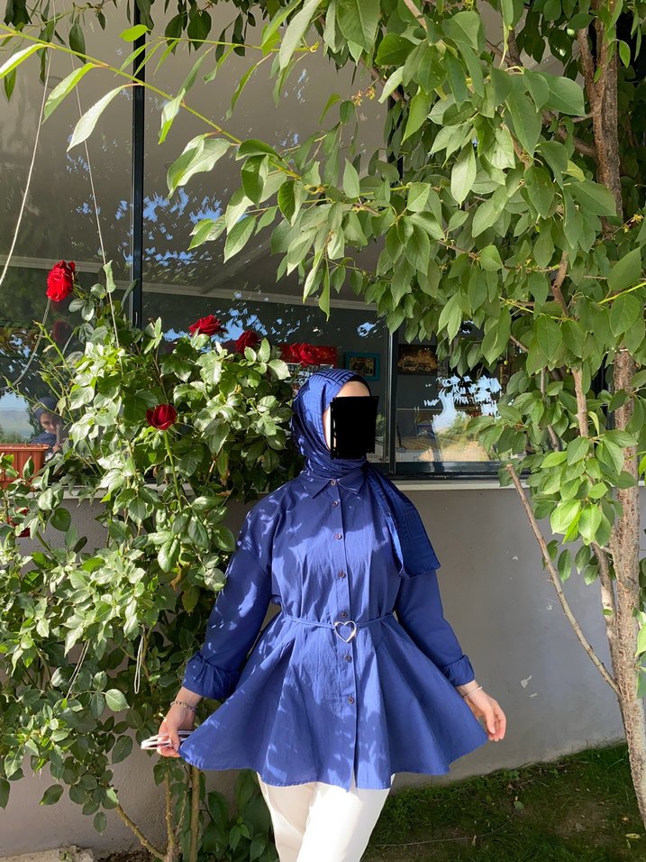 Kalp aksesuarlı lacivert gömlek. Standart bedendir.