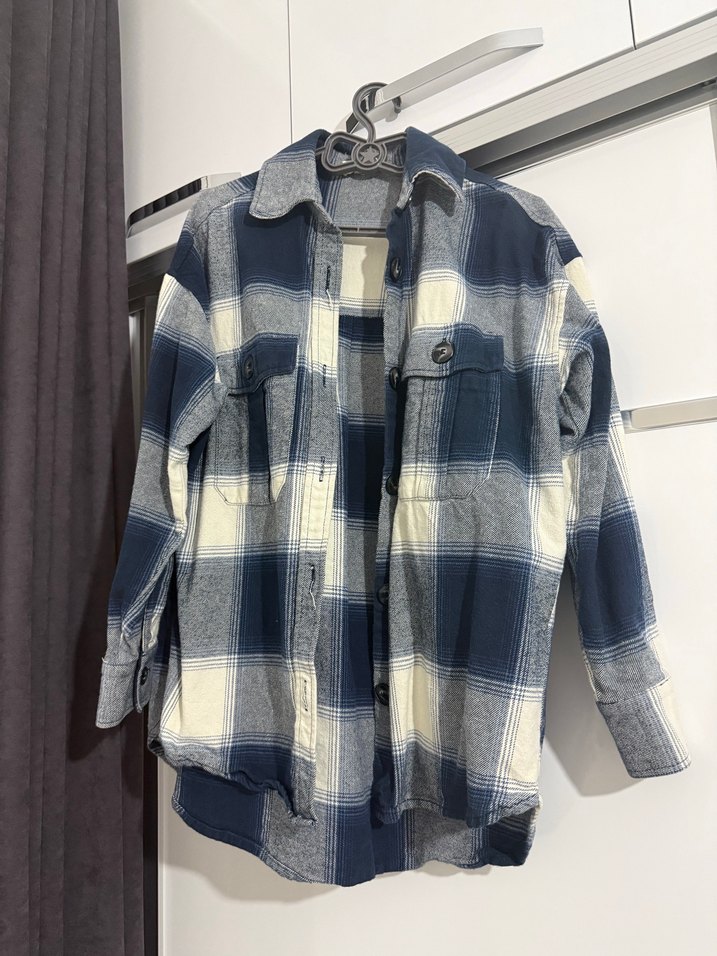 Düğmeli, uzun kollu, bol kesim kadın gömlek. Mavi ekose desenli ve pamuklu kumaştan üretilmiştir. Günlük rahat kullanıma uygundur.