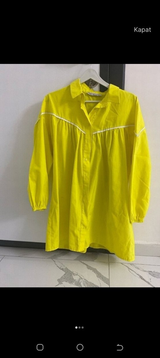 Sarı mini gömlek, uzun kollu, yakalı ve düğmeli ön detaylara sahiptir. Bol kesim ve parlak dokusu ile trend günlük kullanıma uygundur. ✨
