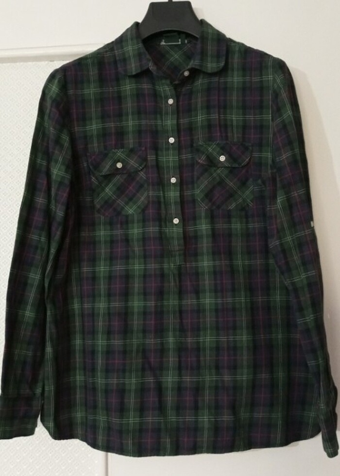 İyi durumda sadece 1 defa giydim şuan bol geliyor kemer yeri mevcut fakat kemeri mevcut değil.kollari kıvrılıp kısa kol olabliyor .yüzde yüz pamuklu