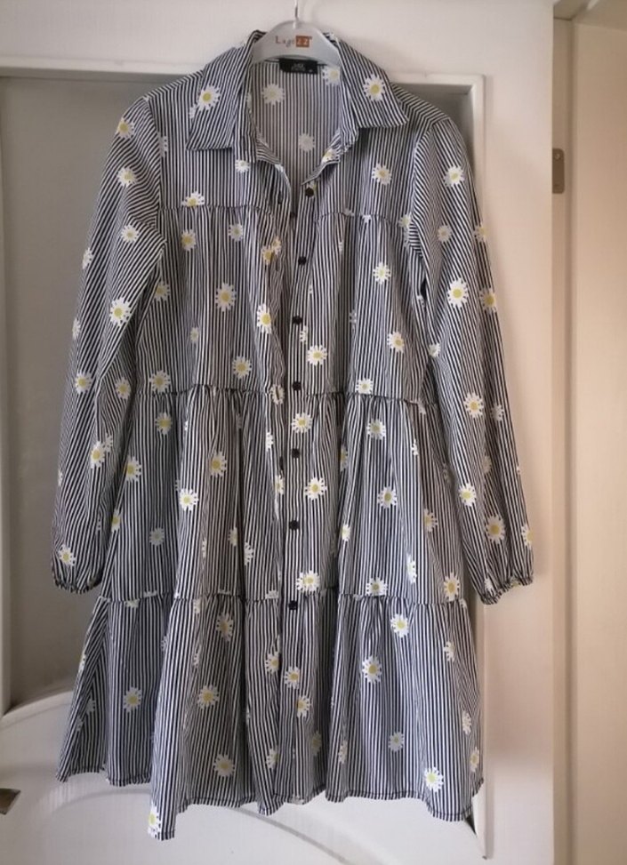 Düğmeli, yakalı ve uzun kollu, bol kesim gri gömlek. Çizgili ve çiçek desenleriyle bohem tarzını yansıtır. 36 38 beden için uygundur.