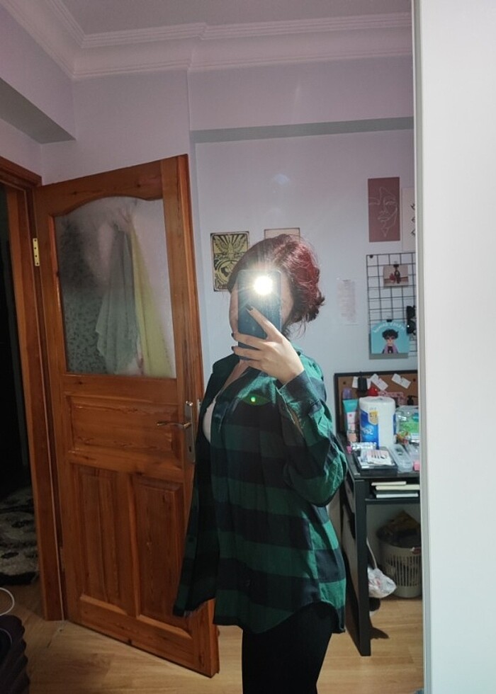 Yeşil-siyah kareli DeFacto gömlek.Yeni gibi,sorunsuzdur.