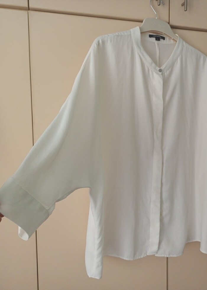 Dökümlü kumaş, beden L, kol altı 75 cm boy 68 cm.dir. Hiç kullanılmadı, yedek düğmeleri üzerindedir. Oversize 42-48 aralığında rahatlıkla olur. Marka temsilidir.