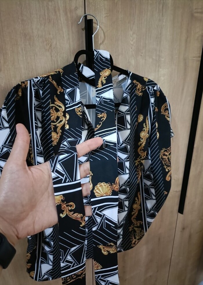 38 beden etiketi üstünde sıfır gömlek. Fular bağı olan bir modeli var.