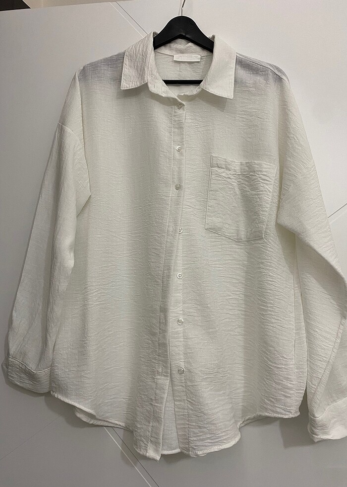 Happiness İstanbul Oversize Keten Ayrobin Beyaz Gömlek 36 beden