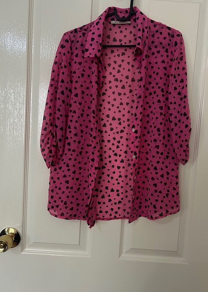 İnce şifon kalp desenli gömlek