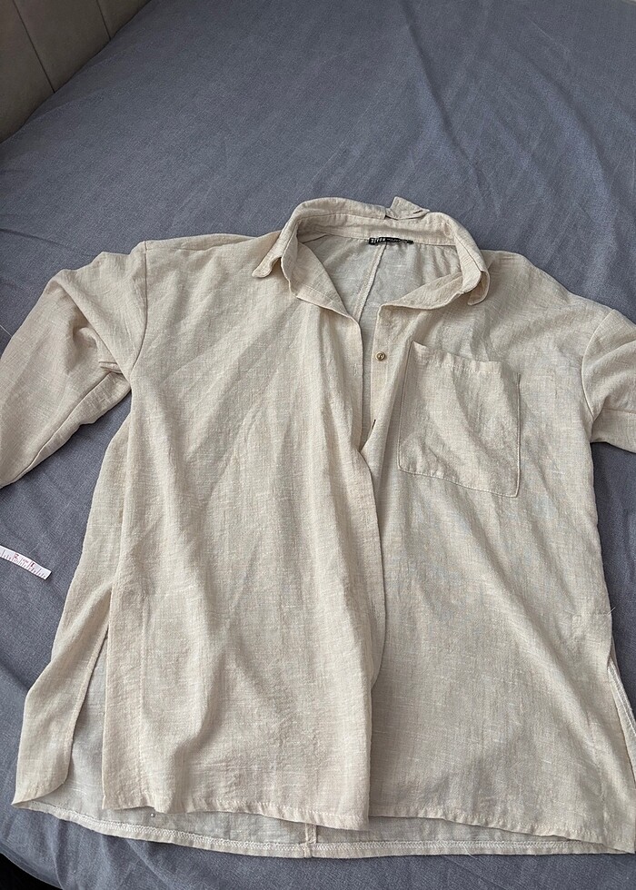 Salaş yırtmaç ve taka düğme detaylı bej rengindedir
