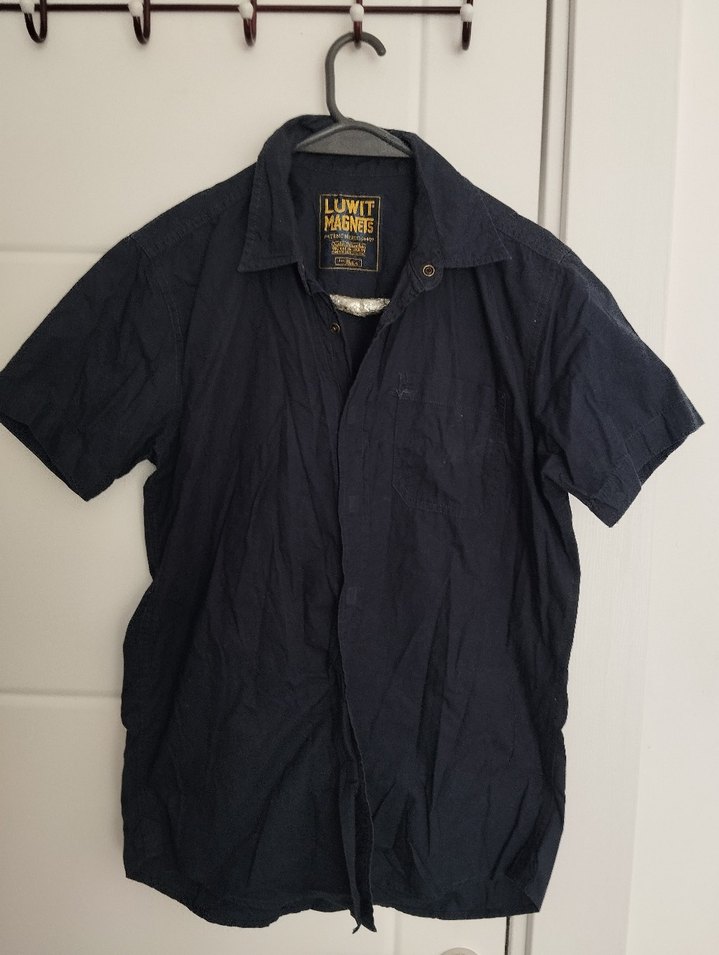 Siyah keten kumaştan, kısa kollu, yakası açık ve düğmeli, bol kesim erkek gömlek. Günlük rahat kullanım için uygundur. lacivert m beden düğmeli değil kuvvetli mıknatıslı asla açılma yapmıyor ölçüleri mevcut değerlendirmeyi ona göre yapılsın iade kabul edilmemektedir baza altında tozlanmış çıkarmadım sayılı giyildi sayılır.