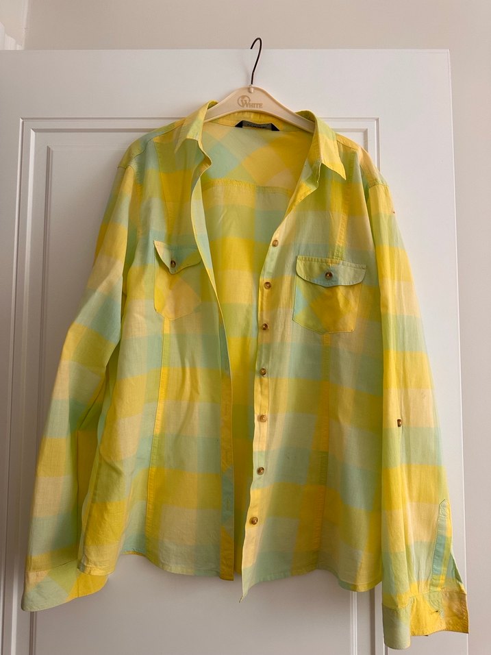 Bağzı lekeleri var çıkıyor mu çıkmıyor mu bilmiyorum denemedim. İnce yazlık rahat kumaşlı normal bir gömlek.