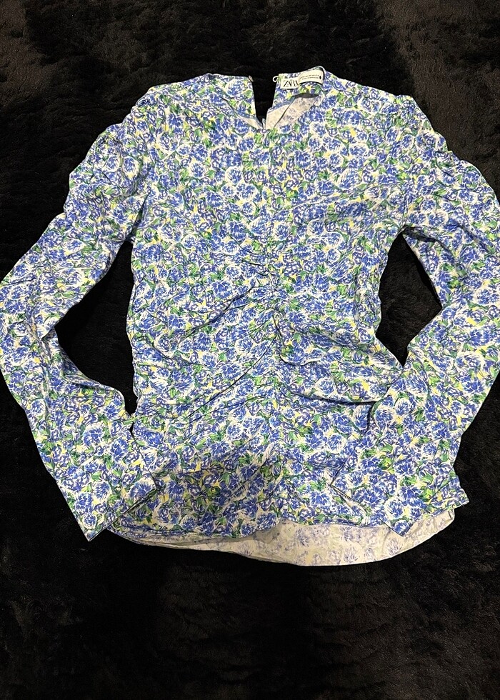 Marka ZARA’dır. Çok tarz bir bluz ön kısmı drapelidir. Kenarında görünmez fermuar vardır.