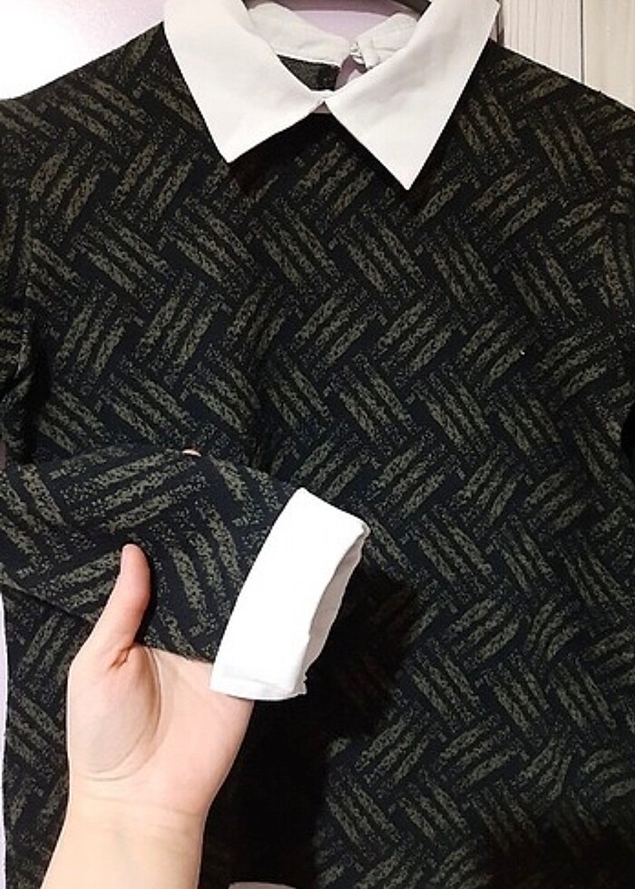 Yaka ve kol ucu gömlek detaylı,yeşil desenli bluz,herhangi bir sorunu yoktur