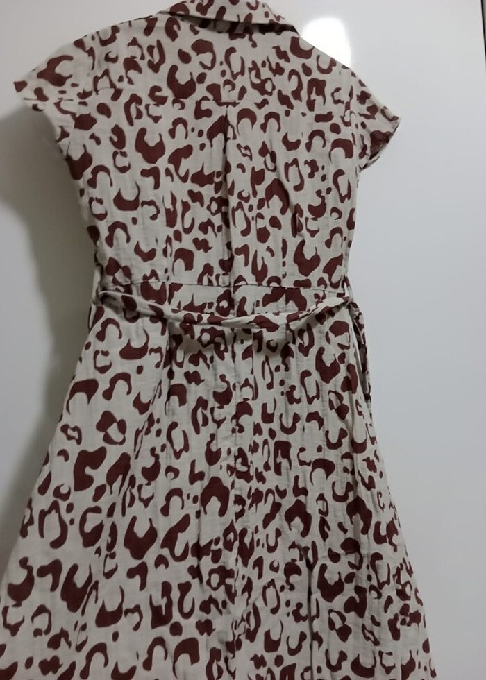 Düğmeli Belinde kuşağı var 2-3 kez giyildi. Keten kumaş Kahve ve ben renginde desenli *Pazarlık payı var. *