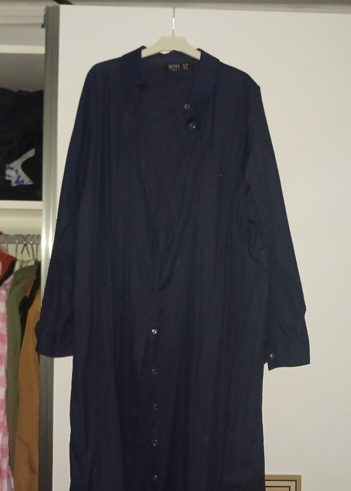 Lacivert rengi 38 beden Gömlek elbise 124 cm elbise boyu