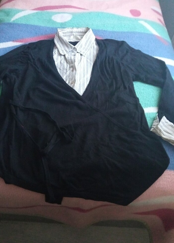 gömlek içinde dikili kruvaze ipli bağlamalı triko gömlek Kazak bluz da diyebiliriz xL beden ama daha büyük beden için uygun bence ben XxL giyiyorum Xxxl bile olur esnek zaten #gömlek #triko #kazak #zara #hm #koton