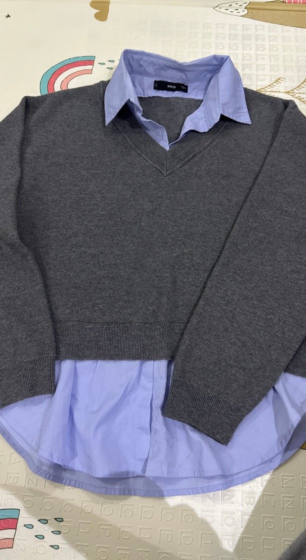 Gri renkli, pamuklu ve örme dokuda, salaş kesim, uzun kollu, yakalı ve normal boyda rahat bir kazaktır. Günlük kullanıma uygundur.