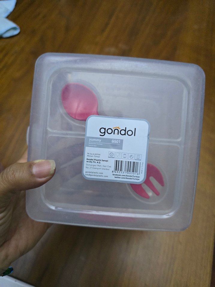 Gondol saklama kabı gri kapak ve pembe bölmelerle farklı yiyecekleri ayırmak için uygundur. Düzenli saklama sağlar.