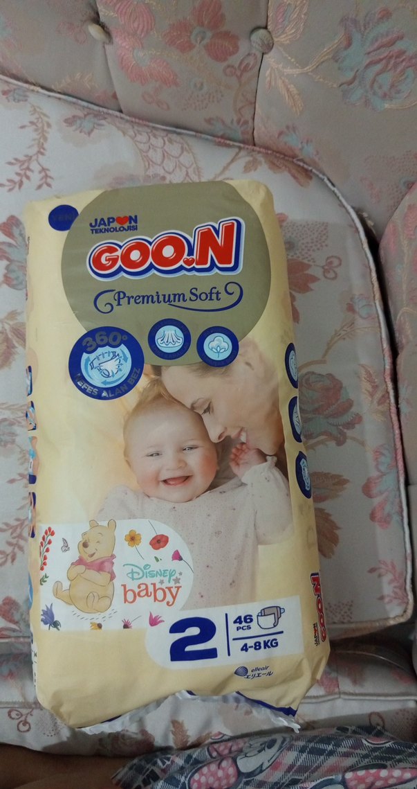 GOO.N Premium Soft bebek bezi, 4-8 kg arası bebekler için, 46 adetlik pakette. 360° esnek uyum ve yumuşak malzeme ile konfor sağlar. Elimde 2 adet açilmamiş poşeti var