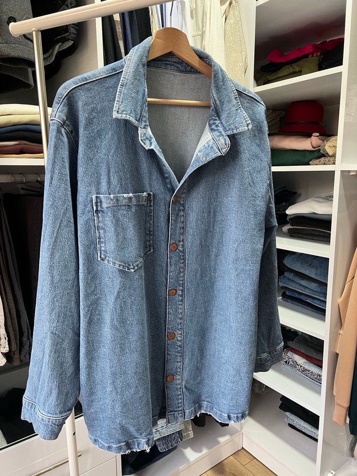 Düğmeli, geniş kesim, notched yaka ve uzun kollu mavi denim kadın ceket, günlük ve sokak stiline uygundur. Midi boyda ve desensizdir. Marka üründür.