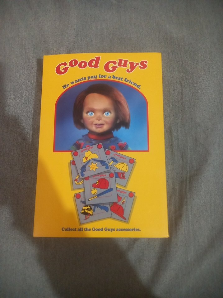 Koyu altın renkli Good Guys aksiyon figürü, çeşitli aksesuar kartları ile birlikte. Koleksiyoncular için uygun detaylı tasarım.