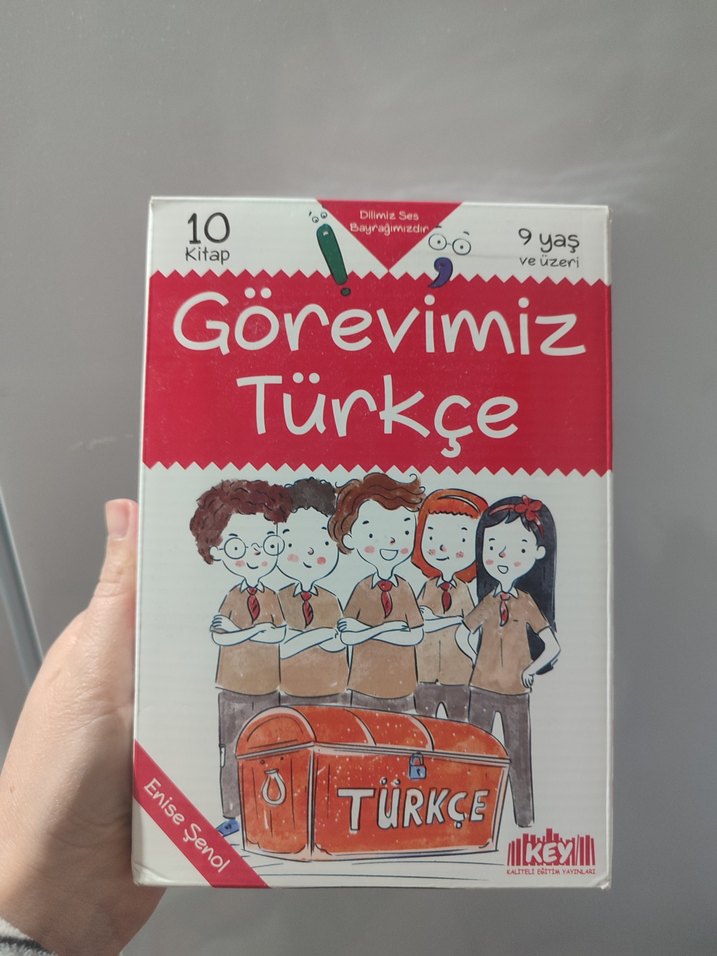 9 yaş ve üzeri çocuklar için 10 kitaplık Türkçe set. Renkli çizimler ve eğlenceli içeriklerle dil öğrenimini destekler. Değerlendirme kitapçığı yok. Bir tanesine su dökülmüş ama okumaya engel bir durumu yok. Kapak ve kenarlarında su lekesi oluşmuş. Yırtık karalama yok.