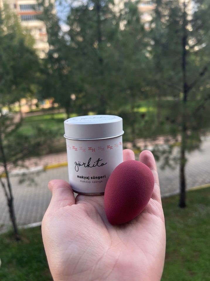 Görkito Bordo renkli, yumuşak dokulu makyaj süngeri kutusu ile birlikte. Az kullanıldı. Yıkanabilir,ıslak veya kuru kullanılabilir.